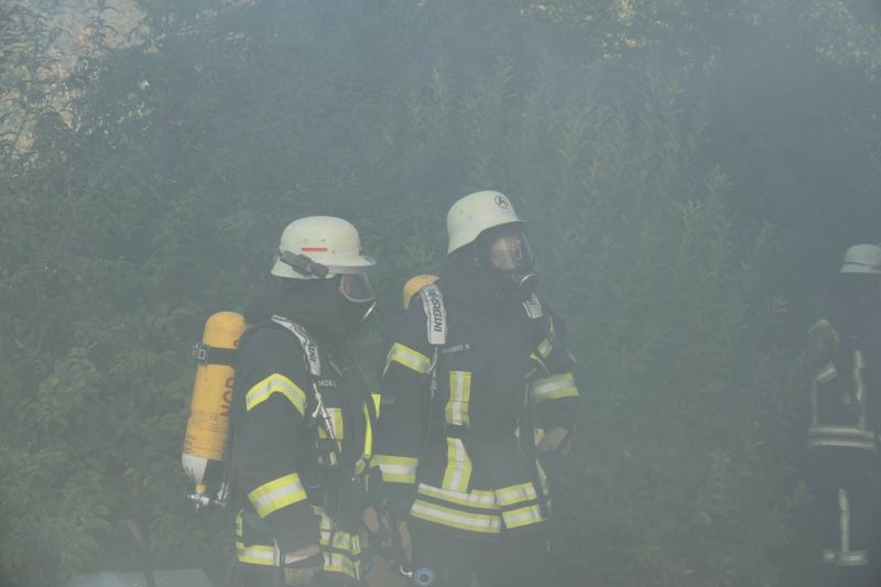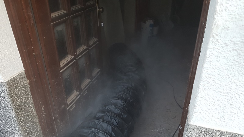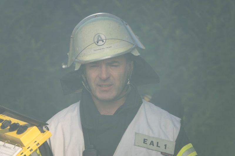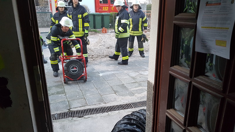 Die Taktische Ventilation ist ein wichtiger Baustein beim Vorgehen im Brandeinsatz. Hierbei wurden verschiedene Szenarien beübt, wie z.B. die Entrauchung eines Kellerraumes ohne eigene Abluftöffnung oder die Entrauchung eines Wohnraumes im Obergeschoss. Ebenso wurde die Vorgehensweise im verrauchten Bereich mit der Hilfe der Wärmebildkamera geschult.
