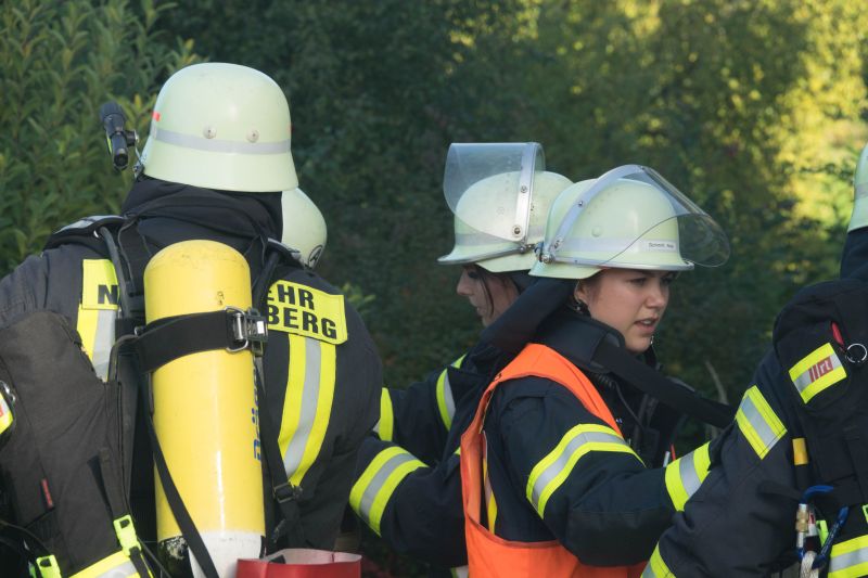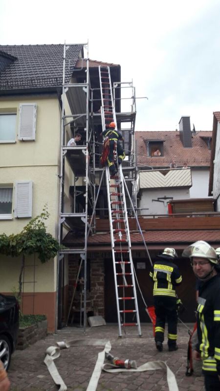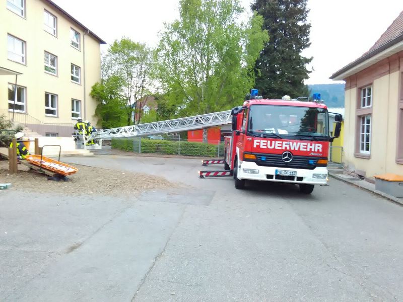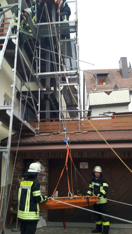 Die Aufgabe der Übung bestand darin, neben dem Aufbau eines Löschangriffs auch mehrere verletzte Personen von einem Gerüst zu retten.