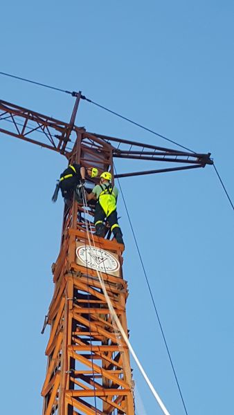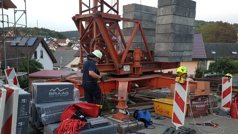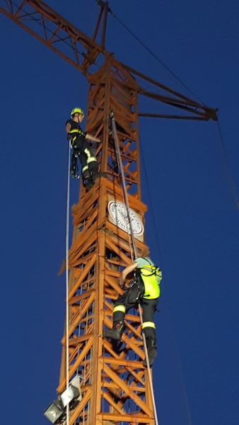 Die Gruppe Absturzsicherung hatte sich zur Aufgabe gestellt eine verletzte Person von einem Baukran zu rettten.