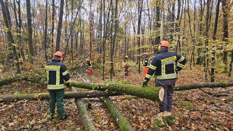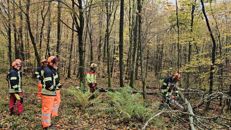 Der Lehrgang beinhaltete auch die Sicherheitsunterweisung für den Umgang mit der Motorsäge bei Feuerwehreinsätzen.