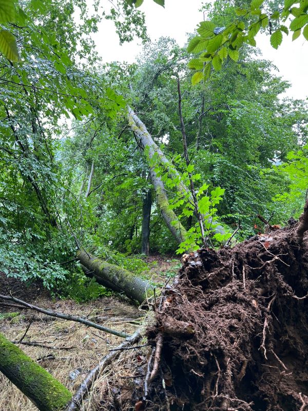 Mehrere Bäume waren auf dem Radweg zwischen Schleuse Neckarsteinach und Neckarhäuserhof aufgrund des Starkregens umgestürzt. Zusammen mit der Abt. Mückenloch wurden die Bäume entfernt und der Radweg gesperrt.